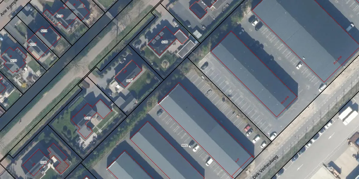 Het perceel waarop Dirk Verheulweg 4-J staat heeft een oppervlakte van 5595 m². Dit is een zeer groot perceel. De perceeloppervlakte wordt geregistreerd door het Kadaster. Gedetailleerde informatie over de maten van dit perceel kunt u vinden in het rapport Kadastrale kaart met maatvoering van Dirk Verheulweg 4-J.