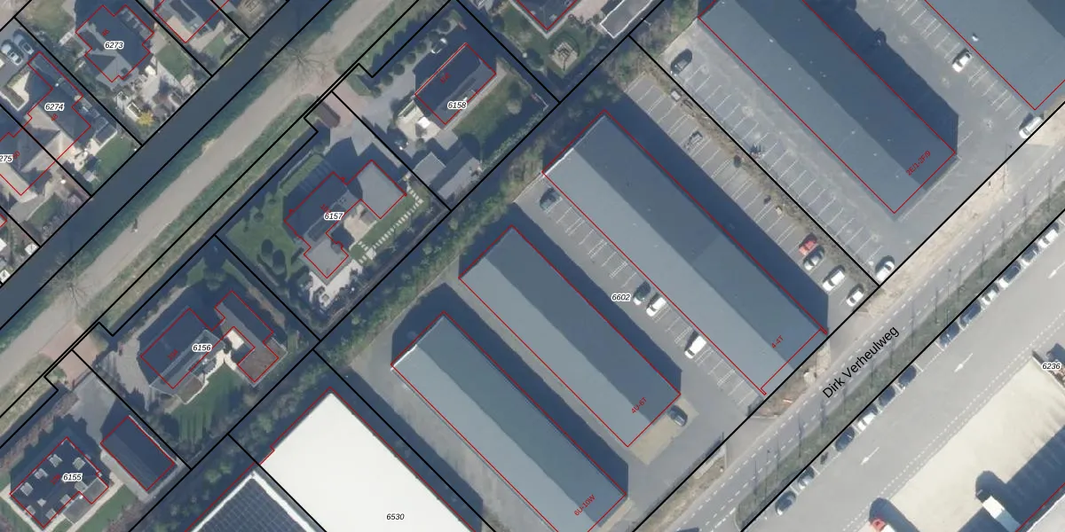 Het perceel waarop Dirk Verheulweg 6-D staat heeft een oppervlakte van 5595 m². Dit is een zeer groot perceel. De perceeloppervlakte wordt geregistreerd door het Kadaster. Gedetailleerde informatie over de maten van dit perceel kunt u vinden in het rapport Kadastrale kaart met maatvoering van Dirk Verheulweg 6-D.