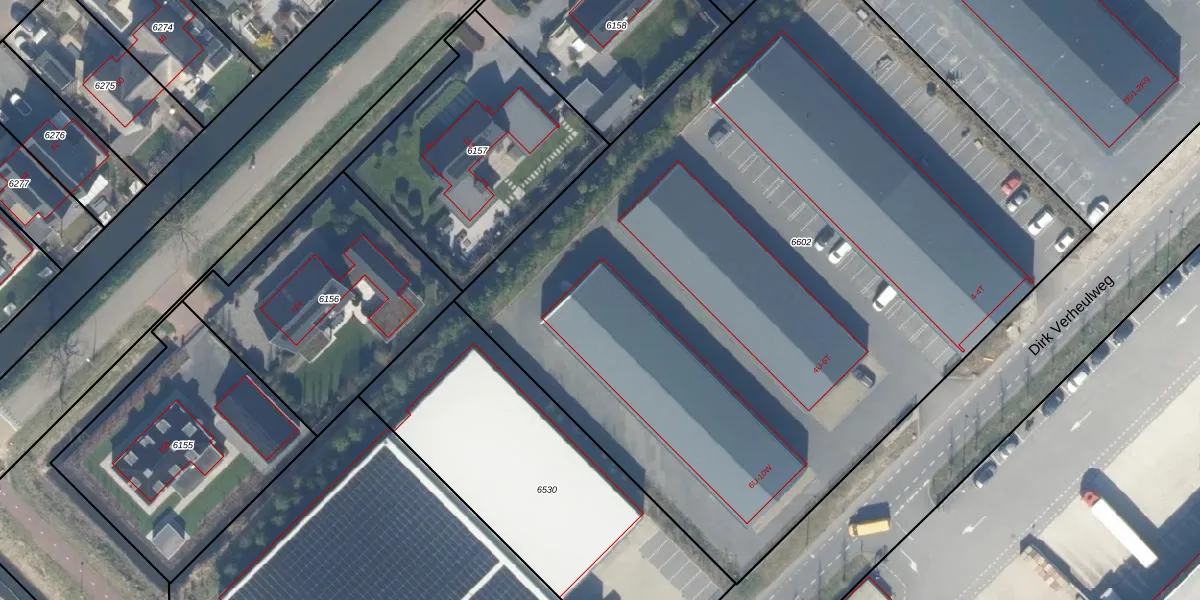 Het perceel waarop Dirk Verheulweg 8-V staat heeft een oppervlakte van 5595 m². Dit is een zeer groot perceel. De perceeloppervlakte wordt geregistreerd door het Kadaster. Gedetailleerde informatie over de maten van dit perceel kunt u vinden in het rapport Kadastrale kaart met maatvoering van Dirk Verheulweg 8-V.