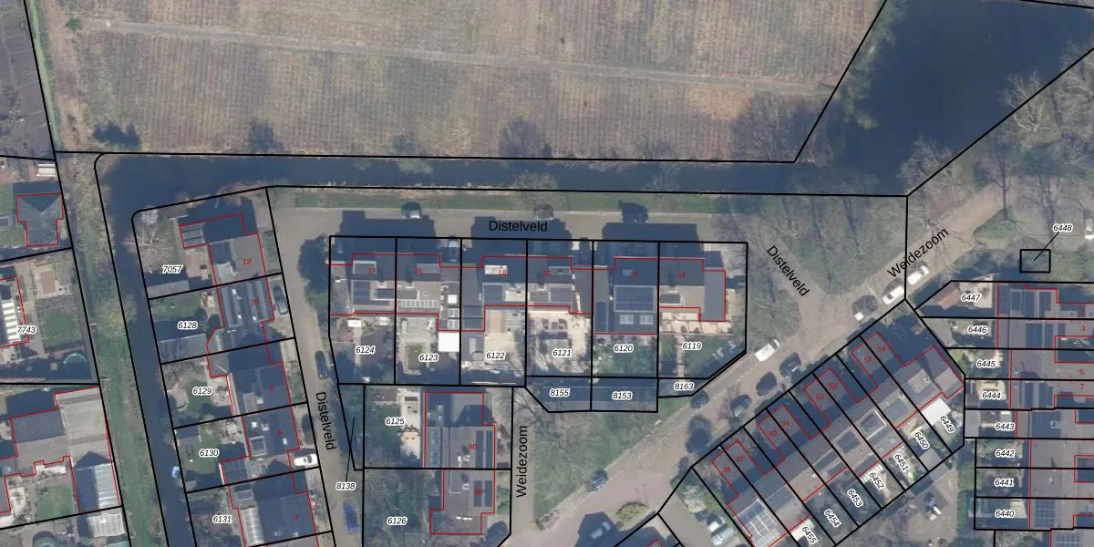 Distelveld 20 is gelegen op kadastraal perceel WDV01B6121. Deze kadastrale aanduiding is uniek en wordt gebruikt door het Kadaster om eigendomsrechten en andere zakelijke rechten vast te leggen. Het perceel maakt onderdeel uit van de kadastrale gemeente Waddinxveen.