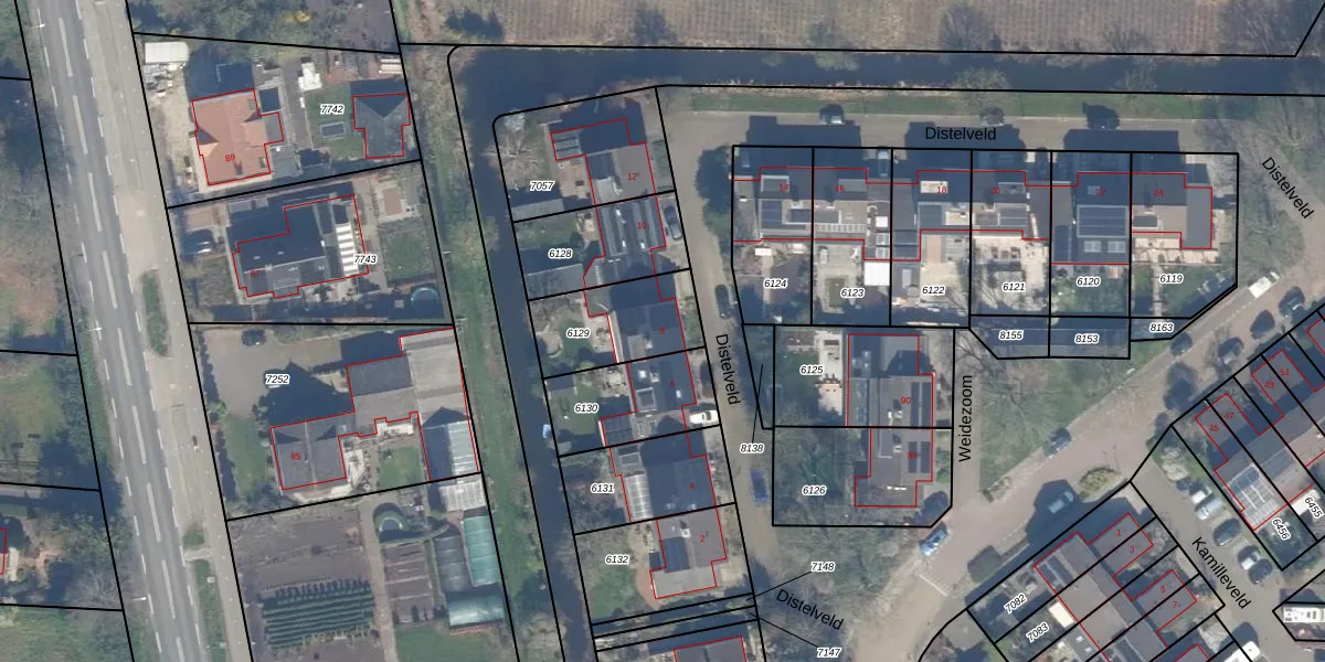 Distelveld 8 is gelegen op kadastraal perceel WDV01B6129. Deze kadastrale aanduiding is uniek en wordt gebruikt door het Kadaster om eigendomsrechten en andere zakelijke rechten vast te leggen. Het perceel maakt onderdeel uit van de kadastrale gemeente Waddinxveen.