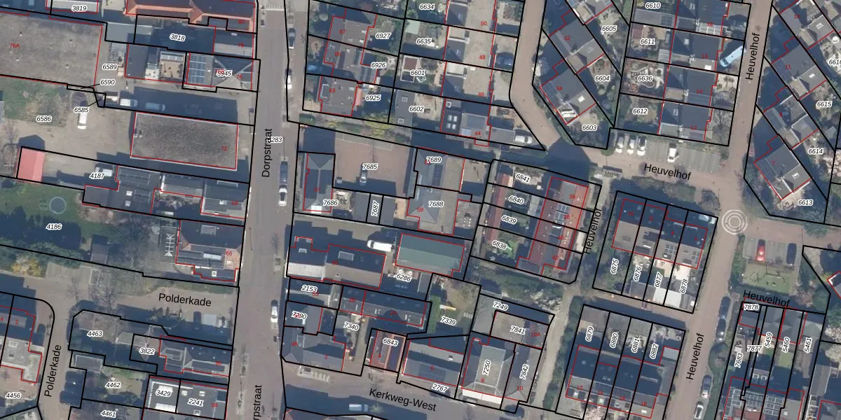 Dorpstraat 59 is gelegen op kadastraal perceel WDV01B7688. Deze kadastrale aanduiding is uniek en wordt gebruikt door het Kadaster om eigendomsrechten en andere zakelijke rechten vast te leggen. Het perceel maakt onderdeel uit van de kadastrale gemeente Waddinxveen.