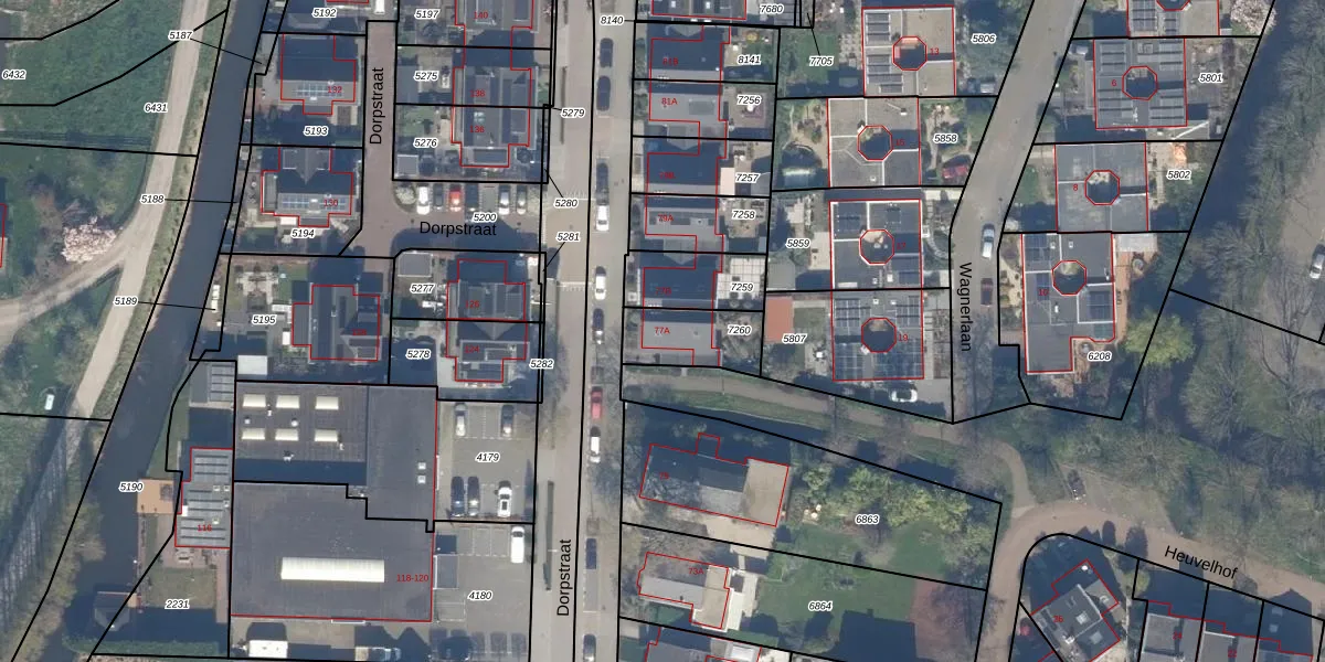 Het perceel waarop Dorpstraat 77-A staat heeft een oppervlakte van 189 m². Dit is een middelgroot perceel. De perceeloppervlakte wordt geregistreerd door het Kadaster. Gedetailleerde informatie over de maten van dit perceel kunt u vinden in het rapport Kadastrale kaart met maatvoering van Dorpstraat 77-A.