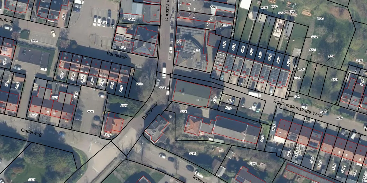 Het perceel waarop Dorpstraat 9-C staat heeft een oppervlakte van 345 m². Dit is een groot perceel. De perceeloppervlakte wordt geregistreerd door het Kadaster. Gedetailleerde informatie over de maten van dit perceel kunt u vinden in het rapport Kadastrale kaart met maatvoering van Dorpstraat 9-C.