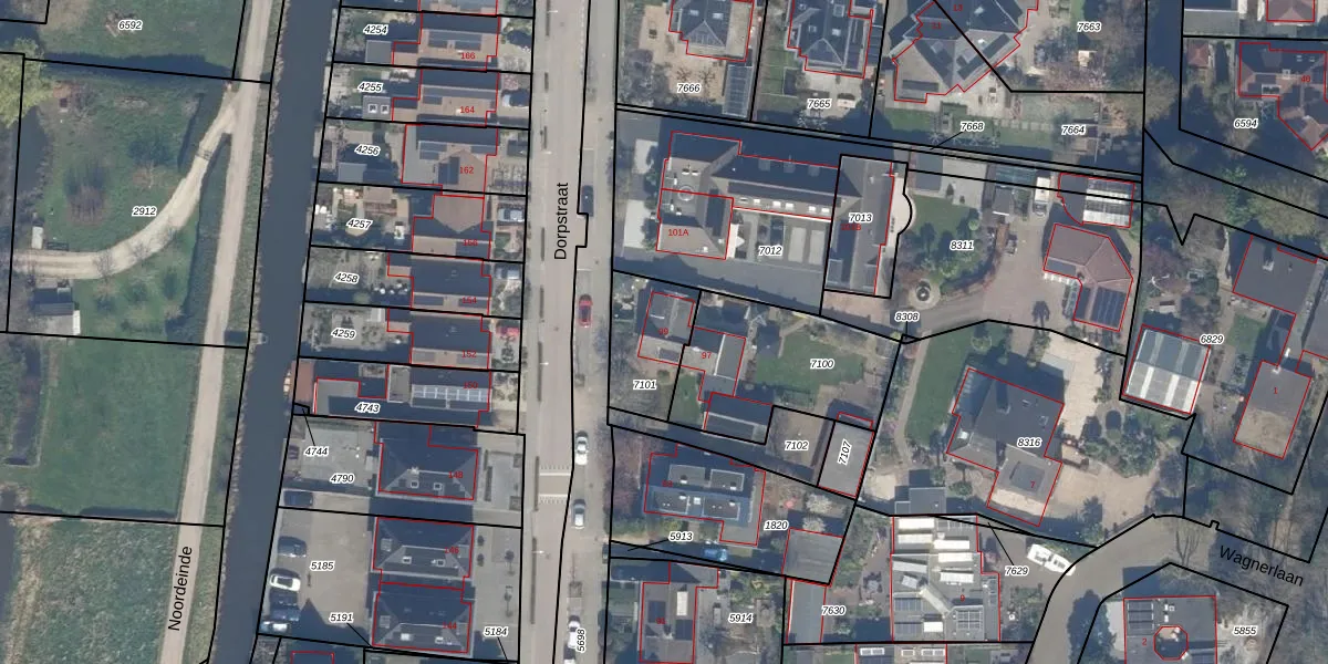 Dorpstraat 99 is gelegen op kadastraal perceel WDV01B7101. Deze kadastrale aanduiding is uniek en wordt gebruikt door het Kadaster om eigendomsrechten en andere zakelijke rechten vast te leggen. Het perceel maakt onderdeel uit van de kadastrale gemeente Waddinxveen.