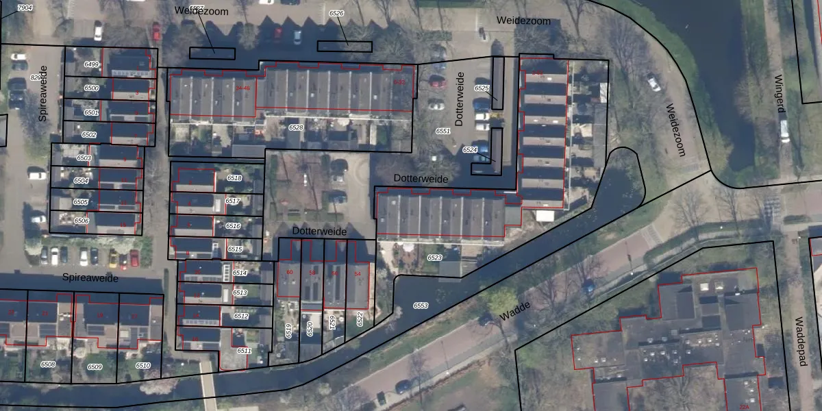Dotterweide 38 is gelegen op kadastraal perceel WDV01B6523. Deze kadastrale aanduiding is uniek en wordt gebruikt door het Kadaster om eigendomsrechten en andere zakelijke rechten vast te leggen. Het perceel maakt onderdeel uit van de kadastrale gemeente Waddinxveen.