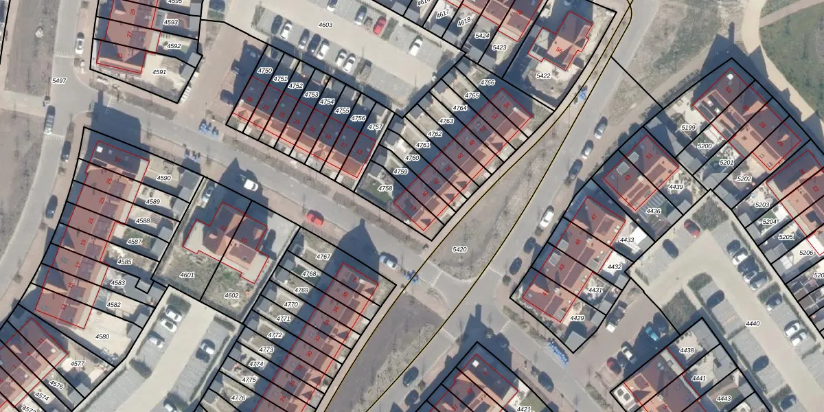 Het perceel waarop het adres ligt is WDV01-E-4758. De afkorting 'WDV01' staat voor kadastrale gemeente Waddinxveen. Het perceel is 163 m² groot. Dat is kleiner dan de gemiddelde perceeloppervlakte in Waddinxveen, dat op 2158,81 m² ligt. De grootste perceeloppervlakte in de kadastrale gemeente is 49,8 ha. De kleinste oppervlakte bedraagt 0 m². Er zijn geen andere adressen aanwezig op het perceel. In de Basisregistratie Kadaster (BRK) werden de grenzen van het perceel geregistreerd op 13-06-2025.