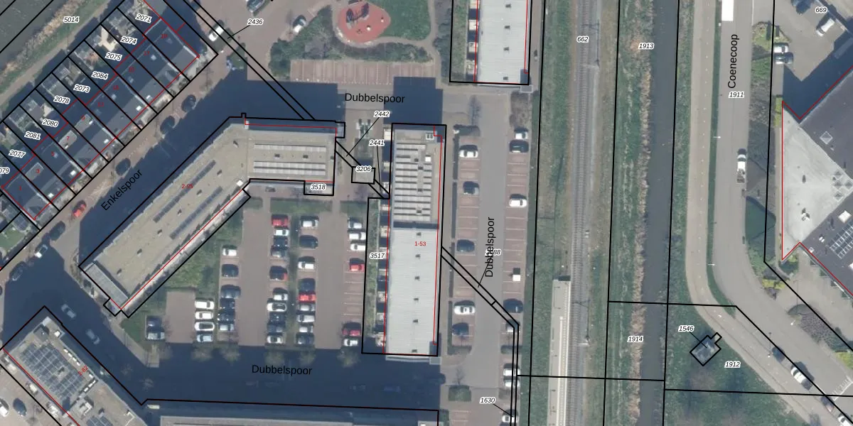 Het perceel waarop Dubbelspoor 13 staat heeft een oppervlakte van 865 m². Dit is een groot perceel. De perceeloppervlakte wordt geregistreerd door het Kadaster. Gedetailleerde informatie over de maten van dit perceel kunt u vinden in het rapport Kadastrale kaart met maatvoering van Dubbelspoor 13.