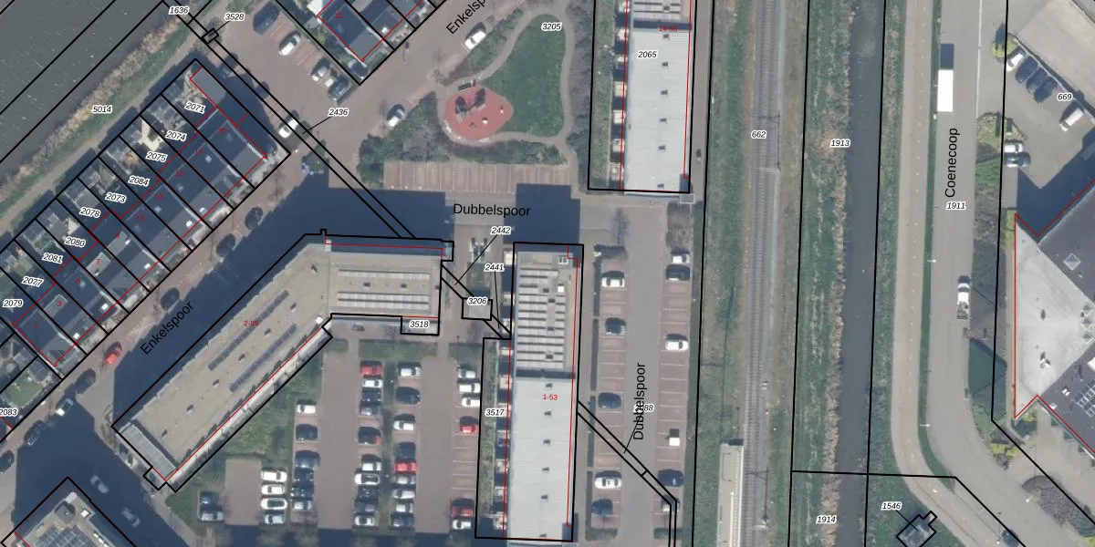 Het perceel waarop Dubbelspoor 15 staat heeft een oppervlakte van 865 m². Dit is een groot perceel. De perceeloppervlakte wordt geregistreerd door het Kadaster. Gedetailleerde informatie over de maten van dit perceel kunt u vinden in het rapport Kadastrale kaart met maatvoering van Dubbelspoor 15.