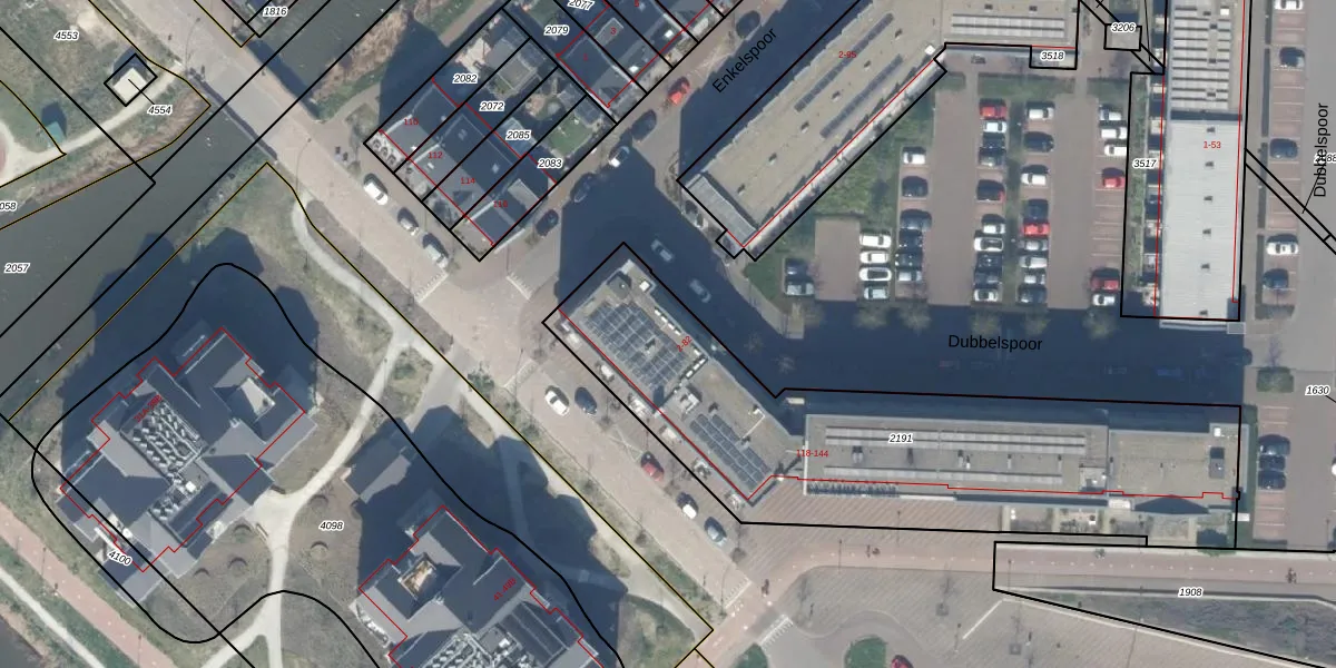 Het perceel waarop Dubbelspoor 18 staat heeft een oppervlakte van 2095 m². Dit is een zeer groot perceel. De perceeloppervlakte wordt geregistreerd door het Kadaster. Gedetailleerde informatie over de maten van dit perceel kunt u vinden in het rapport Kadastrale kaart met maatvoering van Dubbelspoor 18.