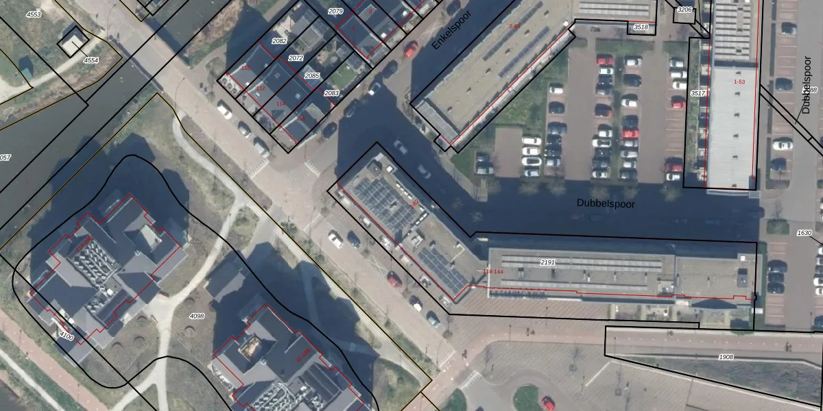 Het perceel waarop Dubbelspoor 20 staat heeft een oppervlakte van 2095 m². Dit is een zeer groot perceel. De perceeloppervlakte wordt geregistreerd door het Kadaster. Gedetailleerde informatie over de maten van dit perceel kunt u vinden in het rapport Kadastrale kaart met maatvoering van Dubbelspoor 20.