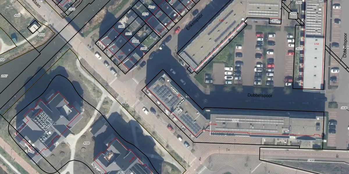 Het perceel waarop Dubbelspoor 4 staat heeft een oppervlakte van 2095 m². Dit is een zeer groot perceel. De perceeloppervlakte wordt geregistreerd door het Kadaster. Gedetailleerde informatie over de maten van dit perceel kunt u vinden in het rapport Kadastrale kaart met maatvoering van Dubbelspoor 4.