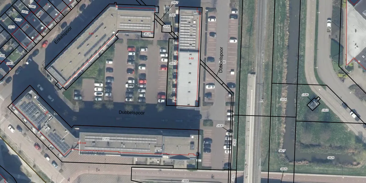 Het perceel waarop Dubbelspoor 51 staat heeft een oppervlakte van 865 m². Dit is een groot perceel. De perceeloppervlakte wordt geregistreerd door het Kadaster. Gedetailleerde informatie over de maten van dit perceel kunt u vinden in het rapport Kadastrale kaart met maatvoering van Dubbelspoor 51.