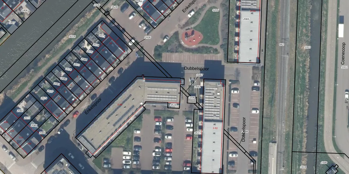Het perceel waarop Dubbelspoor 57 staat heeft een oppervlakte van 1120 m². Dit is een zeer groot perceel. De perceeloppervlakte wordt geregistreerd door het Kadaster. Gedetailleerde informatie over de maten van dit perceel kunt u vinden in het rapport Kadastrale kaart met maatvoering van Dubbelspoor 57.