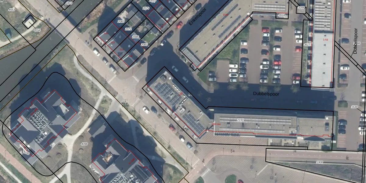 Het perceel waarop Dubbelspoor 8 staat heeft een oppervlakte van 2095 m². Dit is een zeer groot perceel. De perceeloppervlakte wordt geregistreerd door het Kadaster. Gedetailleerde informatie over de maten van dit perceel kunt u vinden in het rapport Kadastrale kaart met maatvoering van Dubbelspoor 8.
