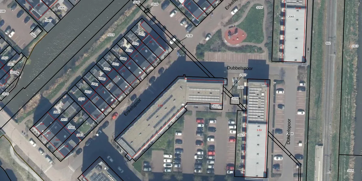 Het perceel waarop Dubbelspoor 83 staat heeft een oppervlakte van 1120 m². Dit is een zeer groot perceel. De perceeloppervlakte wordt geregistreerd door het Kadaster. Gedetailleerde informatie over de maten van dit perceel kunt u vinden in het rapport Kadastrale kaart met maatvoering van Dubbelspoor 83.