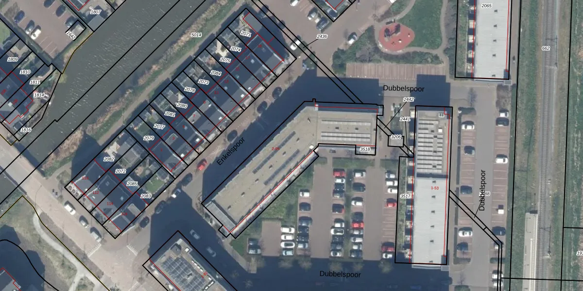 Het perceel waarop Dubbelspoor 85 staat heeft een oppervlakte van 1120 m². Dit is een zeer groot perceel. De perceeloppervlakte wordt geregistreerd door het Kadaster. Gedetailleerde informatie over de maten van dit perceel kunt u vinden in het rapport Kadastrale kaart met maatvoering van Dubbelspoor 85.