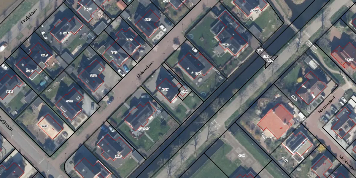 Dukaatlaan 7 is gelegen op kadastraal perceel WDV01C5937. Deze kadastrale aanduiding is uniek en wordt gebruikt door het Kadaster om eigendomsrechten en andere zakelijke rechten vast te leggen. Het perceel maakt onderdeel uit van de kadastrale gemeente Waddinxveen.