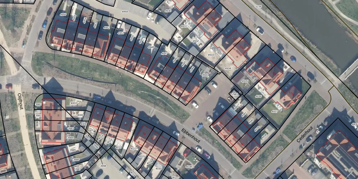 Gebruik de zoekbalk of klik op een perceel voor informatie over de adressen binnen dit perceel.