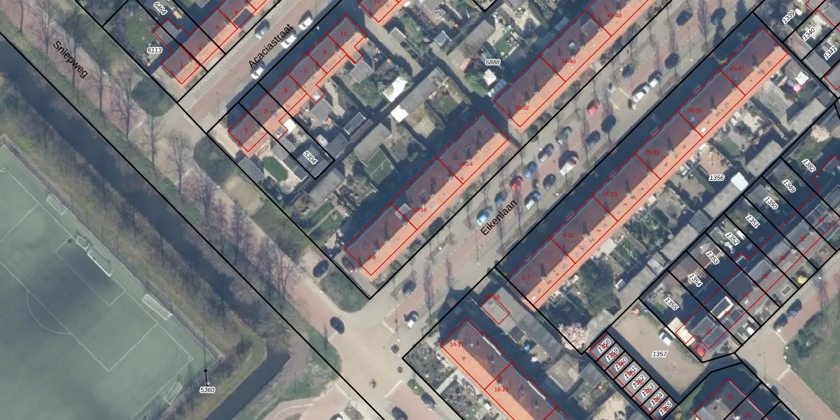Het perceel waarop Eikenlaan 10 staat heeft een oppervlakte van 5258 m². Dit is een zeer groot perceel. De perceeloppervlakte wordt geregistreerd door het Kadaster. Gedetailleerde informatie over de maten van dit perceel kunt u vinden in het rapport Kadastrale kaart met maatvoering van Eikenlaan 10.