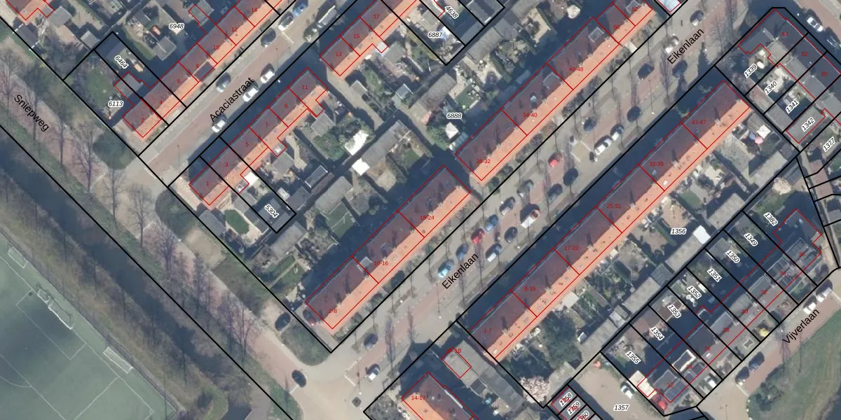Het perceel waarop Eikenlaan 20 staat heeft een oppervlakte van 5258 m². Dit is een zeer groot perceel. De perceeloppervlakte wordt geregistreerd door het Kadaster. Gedetailleerde informatie over de maten van dit perceel kunt u vinden in het rapport Kadastrale kaart met maatvoering van Eikenlaan 20.