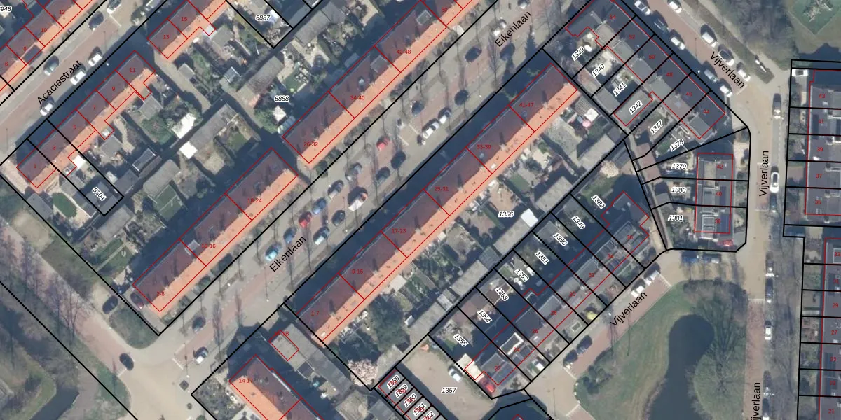 Eikenlaan 23 is gelegen op kadastraal perceel WDV01C1356. Deze kadastrale aanduiding is uniek en wordt gebruikt door het Kadaster om eigendomsrechten en andere zakelijke rechten vast te leggen. Het perceel maakt onderdeel uit van de kadastrale gemeente Waddinxveen.