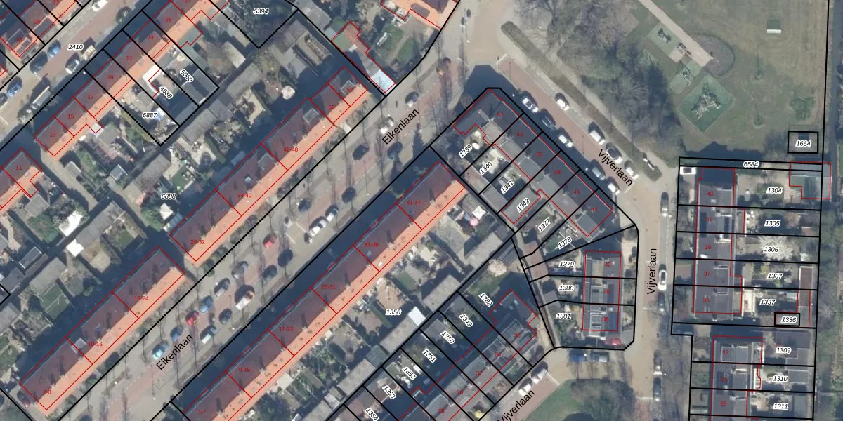 Eikenlaan 43 is gelegen op kadastraal perceel WDV01C1356. Deze kadastrale aanduiding is uniek en wordt gebruikt door het Kadaster om eigendomsrechten en andere zakelijke rechten vast te leggen. Het perceel maakt onderdeel uit van de kadastrale gemeente Waddinxveen.