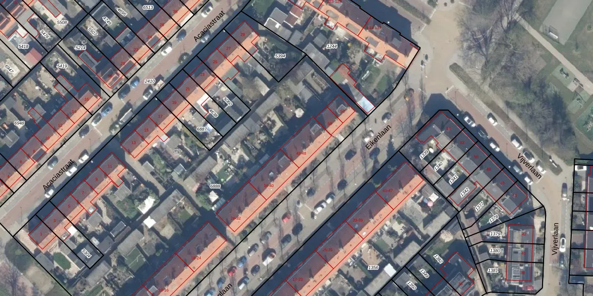Het perceel waarop Eikenlaan 44 staat heeft een oppervlakte van 5258 m². Dit is een zeer groot perceel. De perceeloppervlakte wordt geregistreerd door het Kadaster. Gedetailleerde informatie over de maten van dit perceel kunt u vinden in het rapport Kadastrale kaart met maatvoering van Eikenlaan 44.