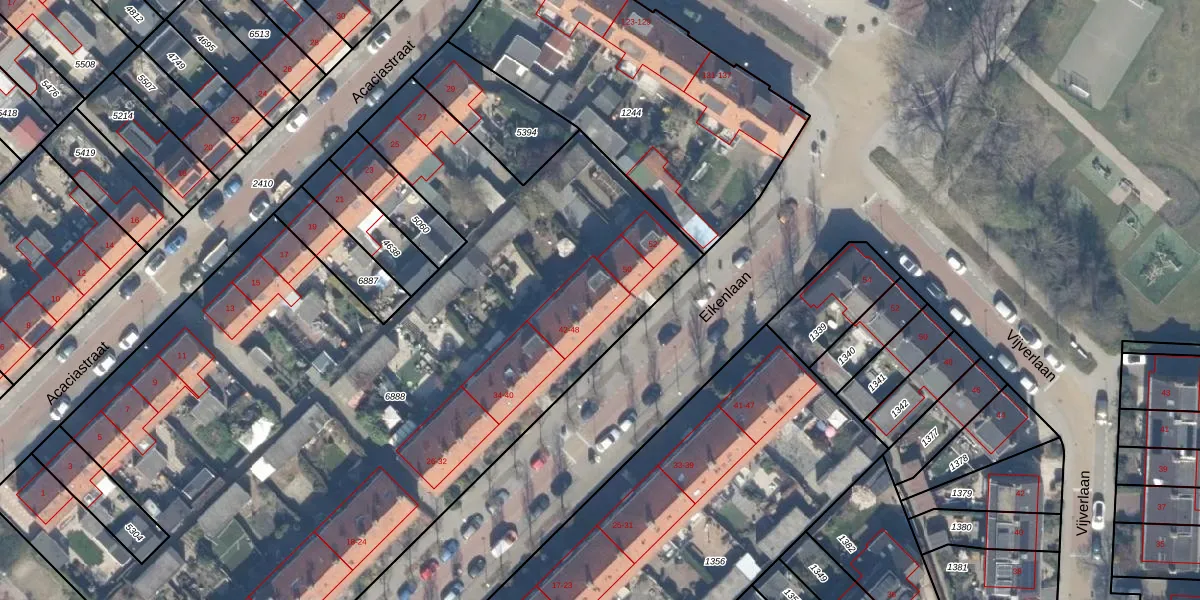 Het perceel waarop Eikenlaan 48 staat heeft een oppervlakte van 5258 m². Dit is een zeer groot perceel. De perceeloppervlakte wordt geregistreerd door het Kadaster. Gedetailleerde informatie over de maten van dit perceel kunt u vinden in het rapport Kadastrale kaart met maatvoering van Eikenlaan 48.