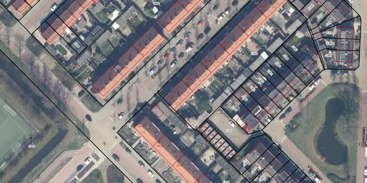Eikenlaan 5 is gelegen op kadastraal perceel WDV01C1356. Deze kadastrale aanduiding is uniek en wordt gebruikt door het Kadaster om eigendomsrechten en andere zakelijke rechten vast te leggen. Het perceel maakt onderdeel uit van de kadastrale gemeente Waddinxveen.