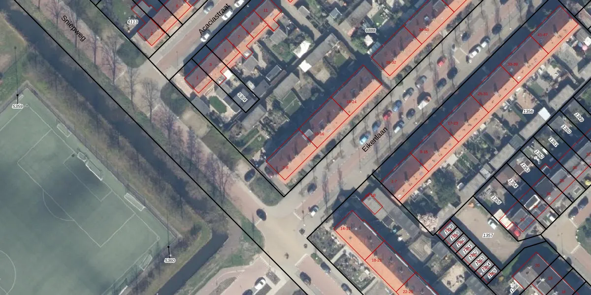Het perceel waarop Eikenlaan 6 staat heeft een oppervlakte van 5258 m². Dit is een zeer groot perceel. De perceeloppervlakte wordt geregistreerd door het Kadaster. Gedetailleerde informatie over de maten van dit perceel kunt u vinden in het rapport Kadastrale kaart met maatvoering van Eikenlaan 6.