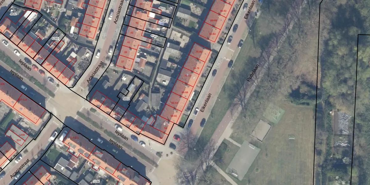 Het perceel waarop Eikenlaan 66 staat heeft een oppervlakte van 7673 m². Dit is een zeer groot perceel. De perceeloppervlakte wordt geregistreerd door het Kadaster. Gedetailleerde informatie over de maten van dit perceel kunt u vinden in het rapport Kadastrale kaart met maatvoering van Eikenlaan 66.