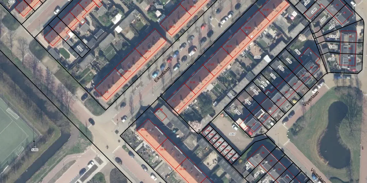 Eikenlaan 7 is gelegen op kadastraal perceel WDV01C1356. Deze kadastrale aanduiding is uniek en wordt gebruikt door het Kadaster om eigendomsrechten en andere zakelijke rechten vast te leggen. Het perceel maakt onderdeel uit van de kadastrale gemeente Waddinxveen.
