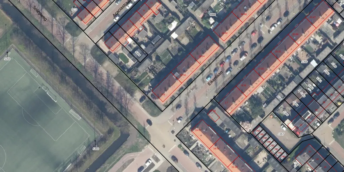 Het perceel waarop Eikenlaan 8 staat heeft een oppervlakte van 5258 m². Dit is een zeer groot perceel. De perceeloppervlakte wordt geregistreerd door het Kadaster. Gedetailleerde informatie over de maten van dit perceel kunt u vinden in het rapport Kadastrale kaart met maatvoering van Eikenlaan 8.