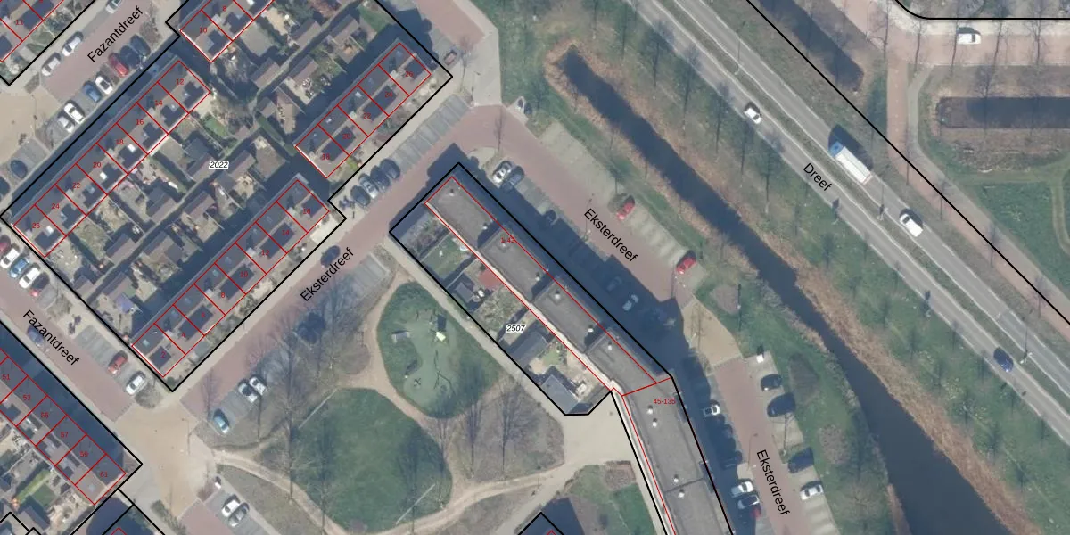 Eksterdreef 3 is gelegen op kadastraal perceel WDV01C2507. Deze kadastrale aanduiding is uniek en wordt gebruikt door het Kadaster om eigendomsrechten en andere zakelijke rechten vast te leggen. Het perceel maakt onderdeel uit van de kadastrale gemeente Waddinxveen.