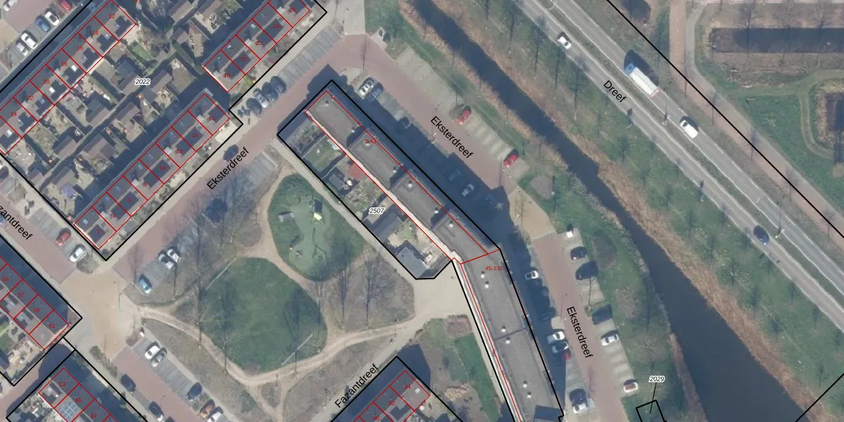 Eksterdreef 31 is gelegen op kadastraal perceel WDV01C2507. Deze kadastrale aanduiding is uniek en wordt gebruikt door het Kadaster om eigendomsrechten en andere zakelijke rechten vast te leggen. Het perceel maakt onderdeel uit van de kadastrale gemeente Waddinxveen.