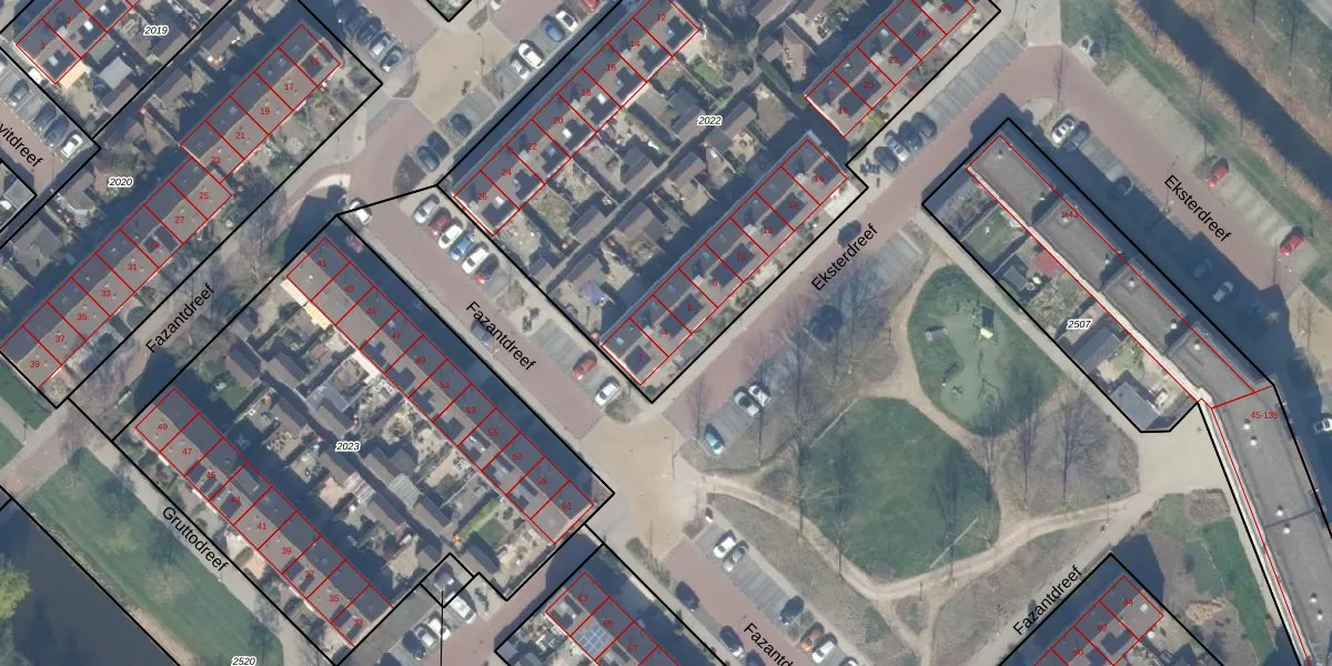 Het perceel waarop Eksterdreef 4 staat heeft een oppervlakte van 3571 m². Dit is een zeer groot perceel. De perceeloppervlakte wordt geregistreerd door het Kadaster. Gedetailleerde informatie over de maten van dit perceel kunt u vinden in het rapport Kadastrale kaart met maatvoering van Eksterdreef 4.
