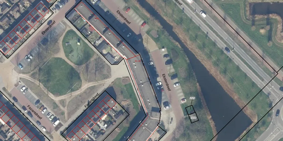 Eksterdreef 47 is gelegen op kadastraal perceel WDV01C2507. Deze kadastrale aanduiding is uniek en wordt gebruikt door het Kadaster om eigendomsrechten en andere zakelijke rechten vast te leggen. Het perceel maakt onderdeel uit van de kadastrale gemeente Waddinxveen.