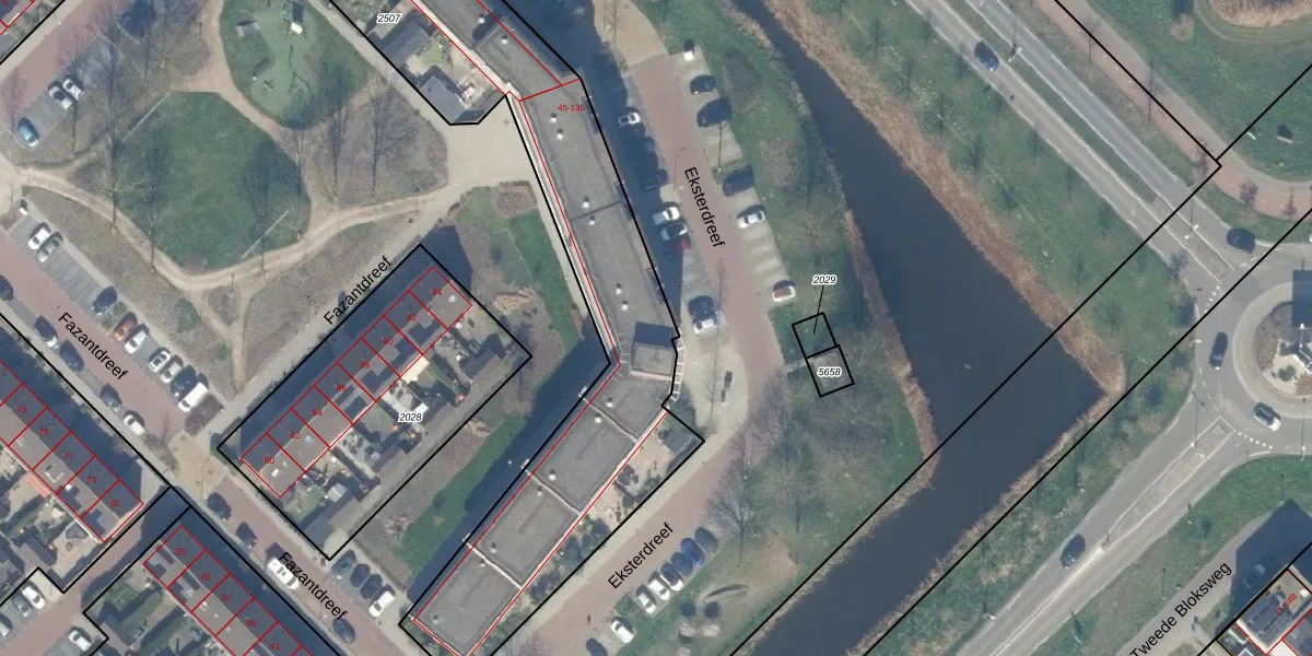 Eksterdreef 55 is gelegen op kadastraal perceel WDV01C2507. Deze kadastrale aanduiding is uniek en wordt gebruikt door het Kadaster om eigendomsrechten en andere zakelijke rechten vast te leggen. Het perceel maakt onderdeel uit van de kadastrale gemeente Waddinxveen.