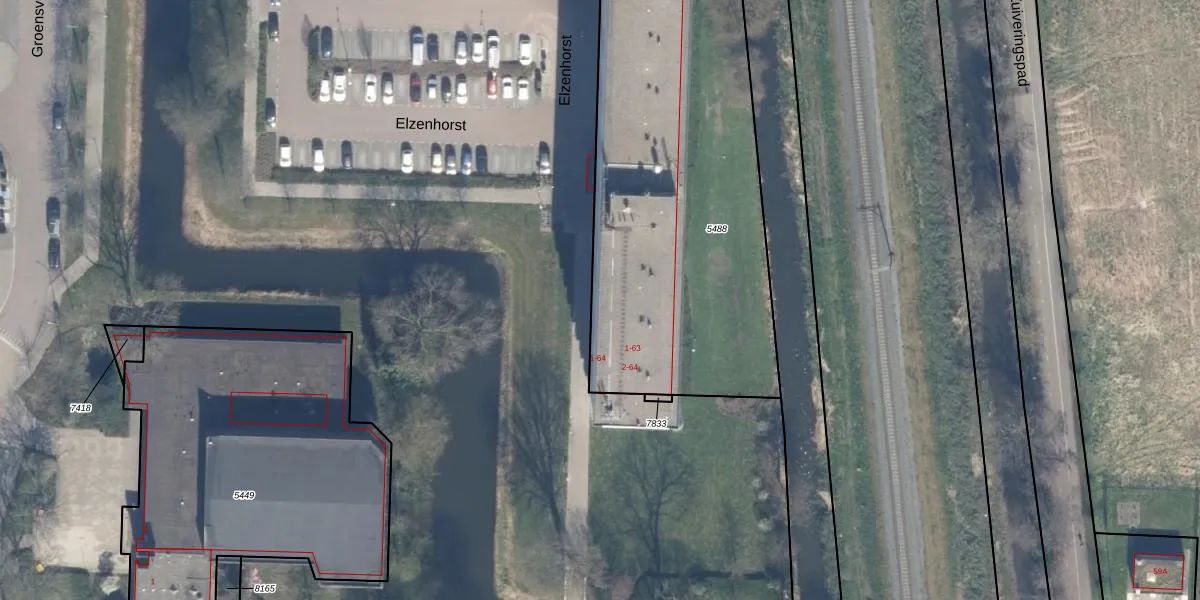 Het perceel waarop Elzenhorst 2 staat heeft een oppervlakte van 2000 m². Dit is een zeer groot perceel. De perceeloppervlakte wordt geregistreerd door het Kadaster. Gedetailleerde informatie over de maten van dit perceel kunt u vinden in het rapport Kadastrale kaart met maatvoering van Elzenhorst 2.