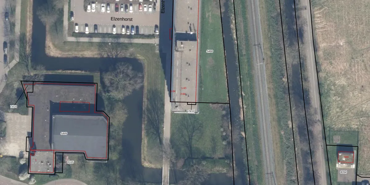 Het perceel waarop Elzenhorst 33 staat heeft een oppervlakte van 2000 m². Dit is een zeer groot perceel. De perceeloppervlakte wordt geregistreerd door het Kadaster. Gedetailleerde informatie over de maten van dit perceel kunt u vinden in het rapport Kadastrale kaart met maatvoering van Elzenhorst 33.