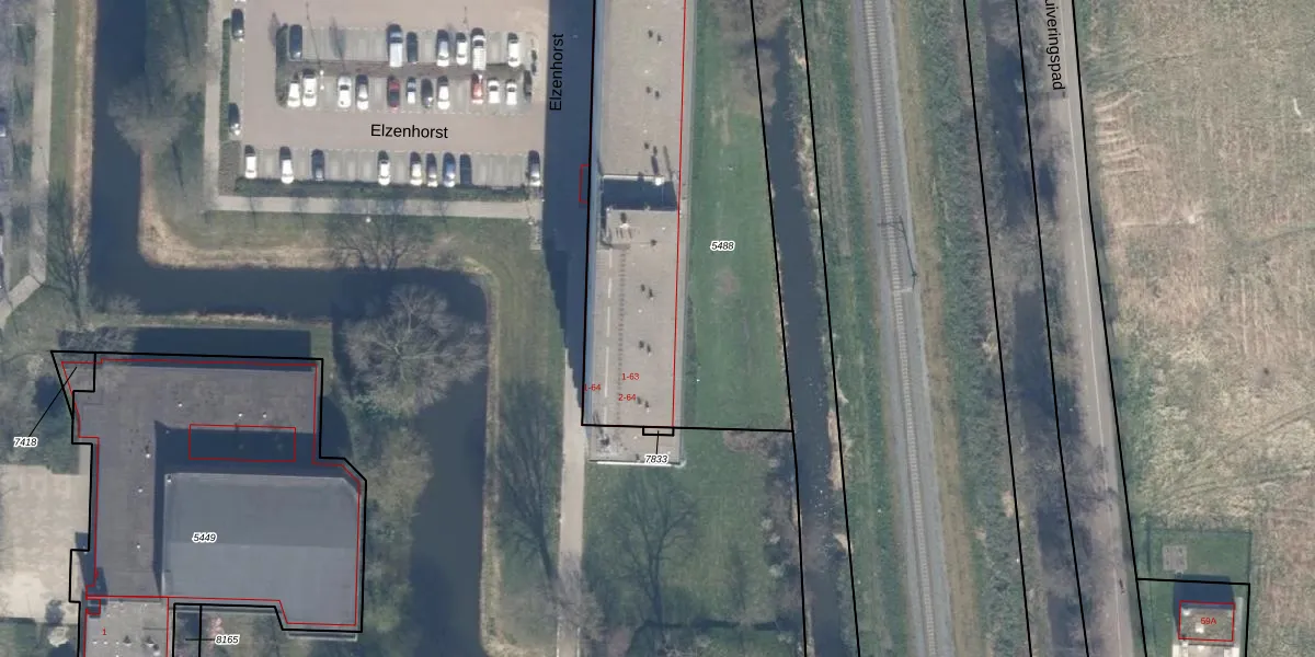 Het perceel waarop Elzenhorst 50 staat heeft een oppervlakte van 2000 m². Dit is een zeer groot perceel. De perceeloppervlakte wordt geregistreerd door het Kadaster. Gedetailleerde informatie over de maten van dit perceel kunt u vinden in het rapport Kadastrale kaart met maatvoering van Elzenhorst 50.