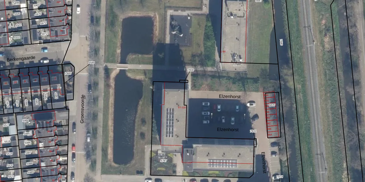 Het perceel waarop Elzenhorst 68 staat heeft een oppervlakte van 1739 m². Dit is een zeer groot perceel. De perceeloppervlakte wordt geregistreerd door het Kadaster. Gedetailleerde informatie over de maten van dit perceel kunt u vinden in het rapport Kadastrale kaart met maatvoering van Elzenhorst 68.