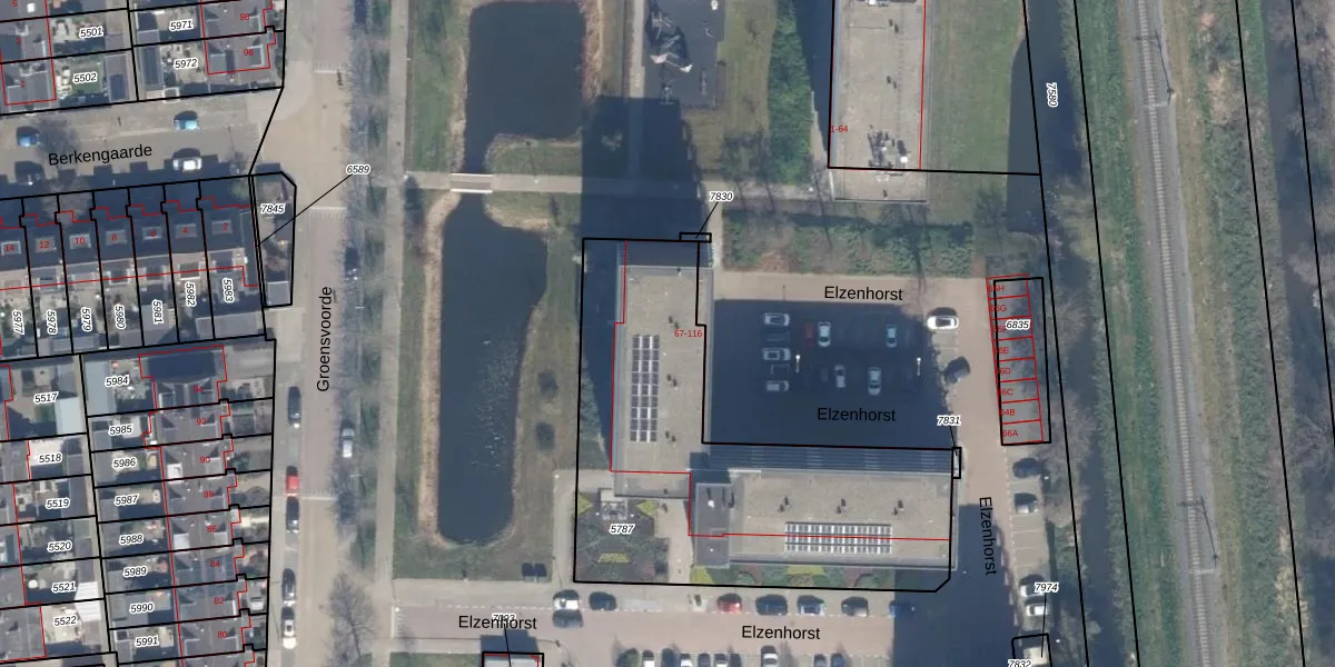 Het perceel waarop Elzenhorst 83 staat heeft een oppervlakte van 1739 m². Dit is een zeer groot perceel. De perceeloppervlakte wordt geregistreerd door het Kadaster. Gedetailleerde informatie over de maten van dit perceel kunt u vinden in het rapport Kadastrale kaart met maatvoering van Elzenhorst 83.