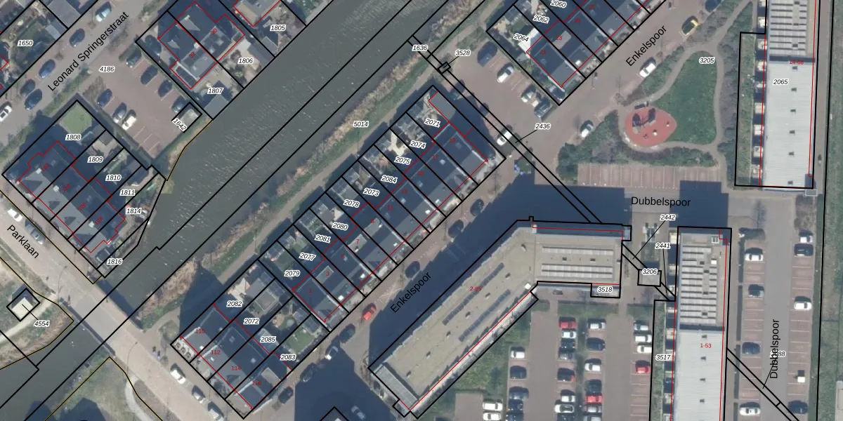 Enkelspoor 13 is gelegen op kadastraal perceel WDV01E2084. Deze kadastrale aanduiding is uniek en wordt gebruikt door het Kadaster om eigendomsrechten en andere zakelijke rechten vast te leggen. Het perceel maakt onderdeel uit van de kadastrale gemeente Waddinxveen.