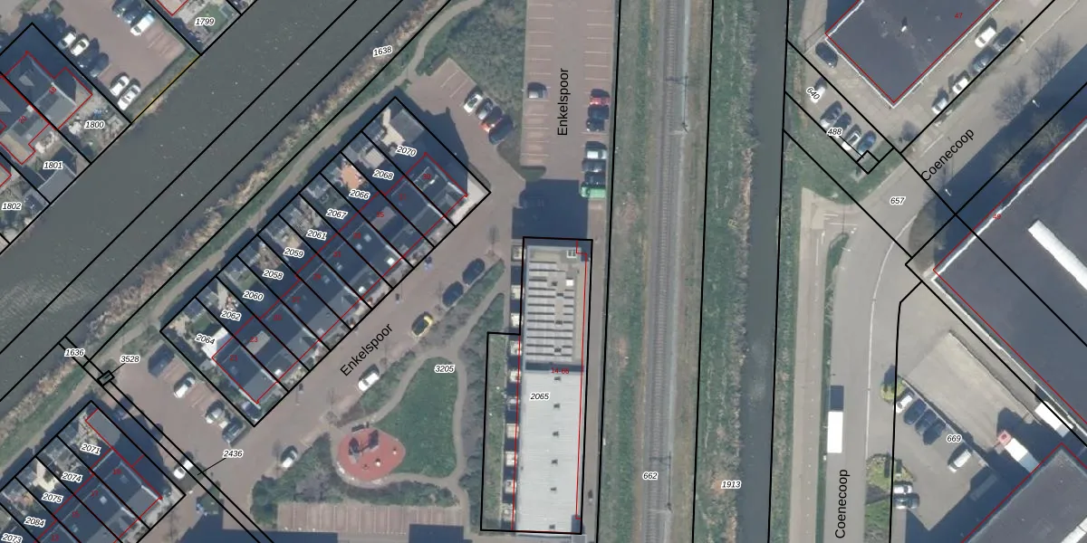 Enkelspoor 48 is gelegen op kadastraal perceel WDV01E2065. Deze kadastrale aanduiding is uniek en wordt gebruikt door het Kadaster om eigendomsrechten en andere zakelijke rechten vast te leggen. Het perceel maakt onderdeel uit van de kadastrale gemeente Waddinxveen.