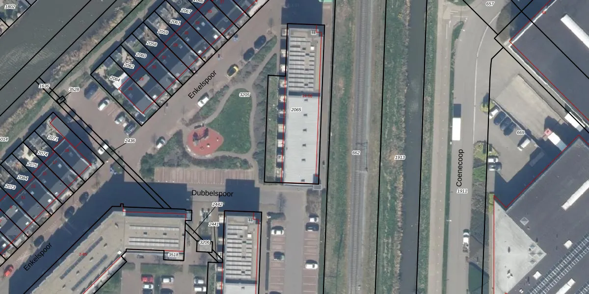 Enkelspoor 62 is gelegen op kadastraal perceel WDV01E2065. Deze kadastrale aanduiding is uniek en wordt gebruikt door het Kadaster om eigendomsrechten en andere zakelijke rechten vast te leggen. Het perceel maakt onderdeel uit van de kadastrale gemeente Waddinxveen.