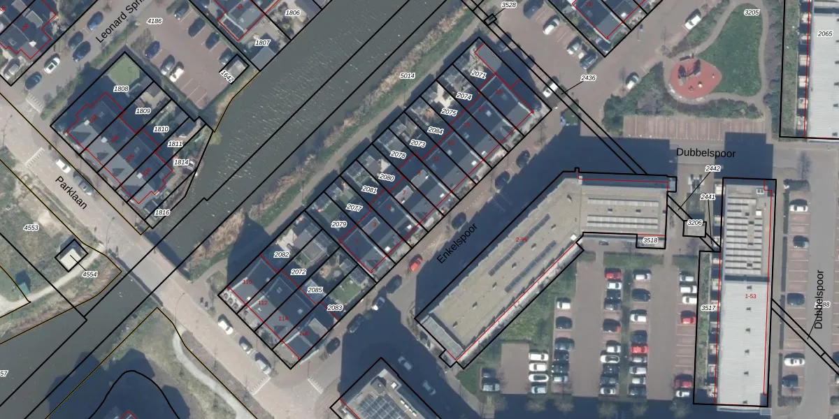 Gebruik de zoekbalk of klik op een perceel voor informatie over de adressen binnen dit perceel.