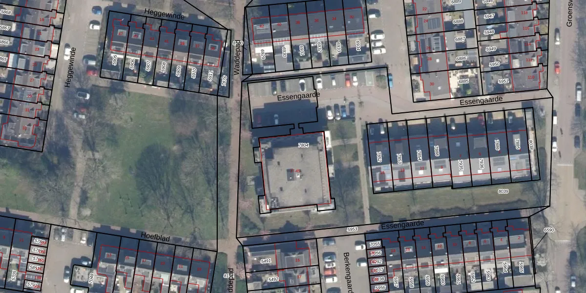 Het perceel waarop Essengaarde 21 staat heeft een oppervlakte van 956 m². Dit is een groot perceel. De perceeloppervlakte wordt geregistreerd door het Kadaster. Gedetailleerde informatie over de maten van dit perceel kunt u vinden in het rapport Kadastrale kaart met maatvoering van Essengaarde 21.