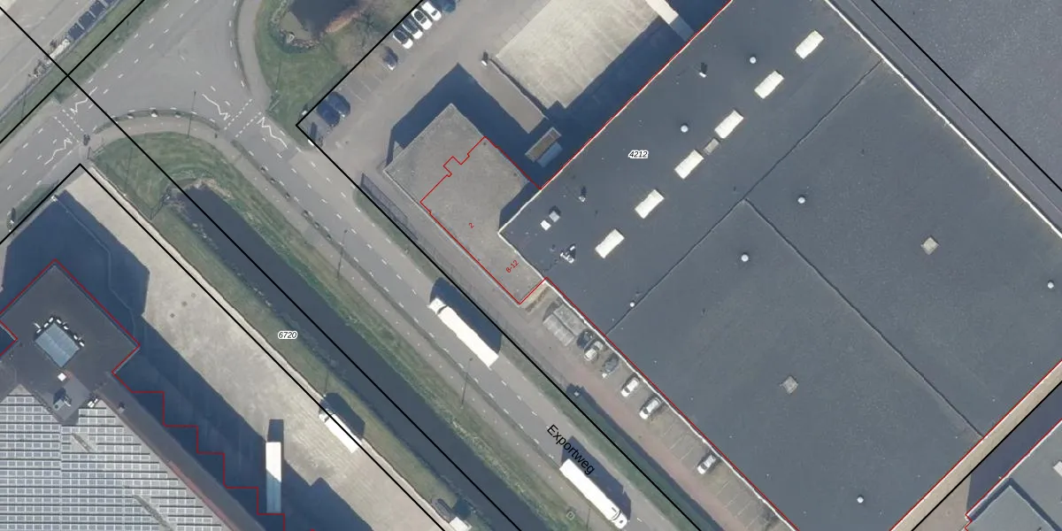 Het perceel waarop Exportweg 12 staat heeft een oppervlakte van 1,3 ha. Dit is een zeer groot perceel. De perceeloppervlakte wordt geregistreerd door het Kadaster. Gedetailleerde informatie over de maten van dit perceel kunt u vinden in het rapport Kadastrale kaart met maatvoering van Exportweg 12.